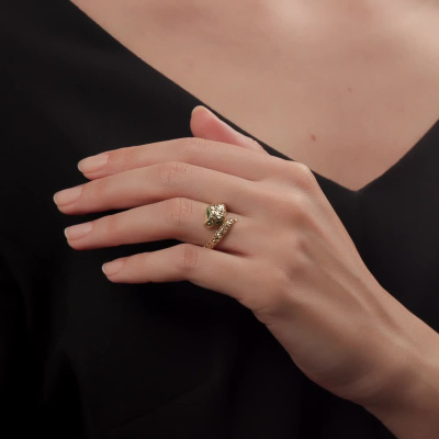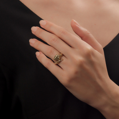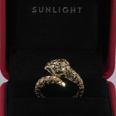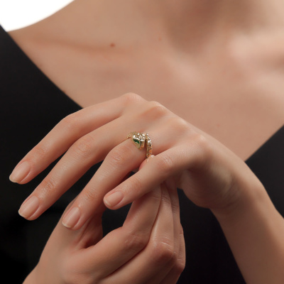 Кольцо, вставка: эмаль зеленая; Желтое золото 585 пробы.