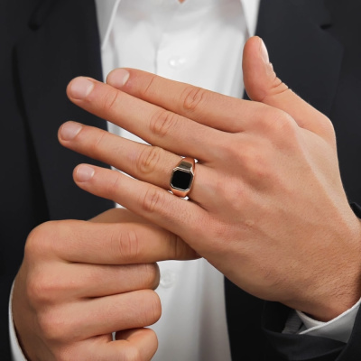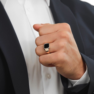 Кольцо с 1 ониксом черным природным; Розовое золото 585 пробы.