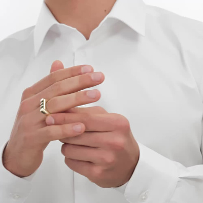 Кольцо с 3 гидротермальными изумрудами, 0.56 карат; Желтое золото 585 пробы.