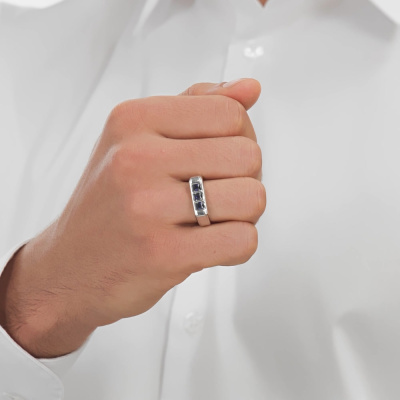 Кольцо с 3 сапфирами синтетическими, 0.83 карат; Белое золото 585 пробы.