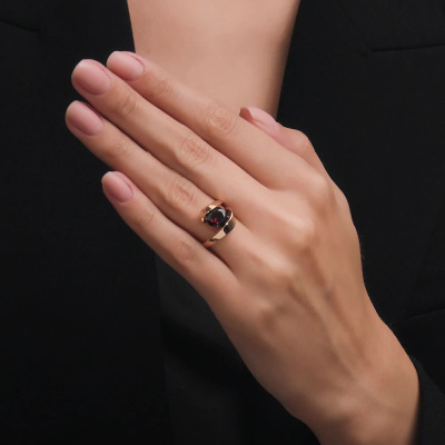 Кольцо с 1 гранатом природным, 2.19 карат; Розовое золото 585 пробы.