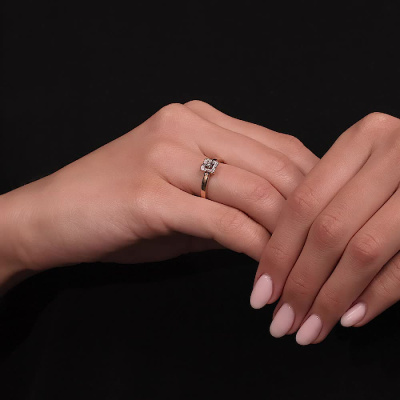 Кольцо с 1 бриллиантом природным, 0.02 карат, огранка круг 57 граней, цвет 4, чистота 5, тип огранки А; 16 бриллиантами природными, 0.03 карат, огранка круг 57 граней, цвет 4, чистота 5, тип огранки А; Розовое и белое золото 585 пробы.
