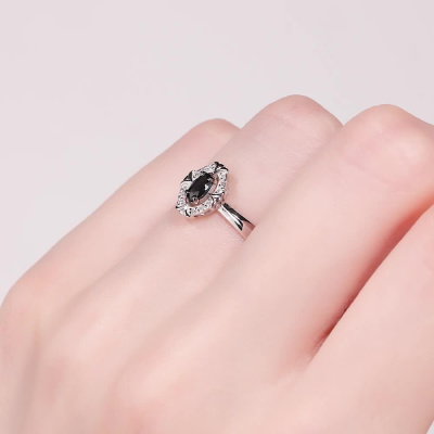 Кольцо с 12 бриллиантами природными, 0.04 карат, огранка круг 57 граней, цвет 4, чистота 5, тип огранки А; 1 сапфиром природным, 0.31 карат, цвет 2, чистота 2, тип огранки Б; Белое золото 585 пробы.