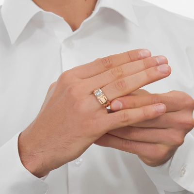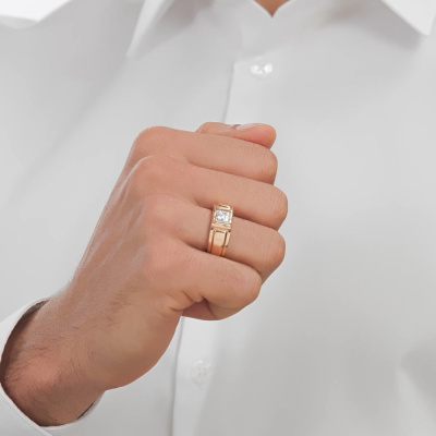 Кольцо с 1 бриллиантом природным, 0.06 карат, огранка круг 57 граней, цвет 3, чистота 6, тип огранки А; 24 бриллиантами природными, 0.04 карат, огранка круг 17 граней, цвет 2, чистота 3, тип огранки А; Розовое и белое золото 585 пробы.