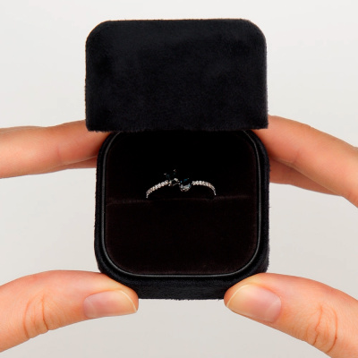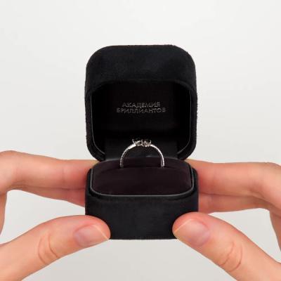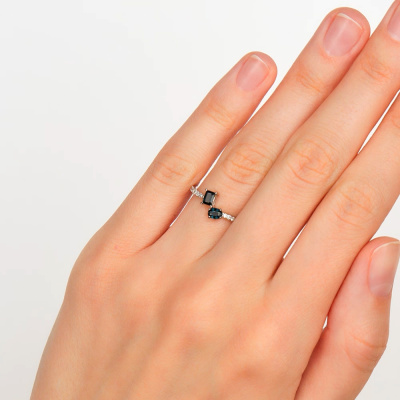 Кольцо с 20 бриллиантами природными, 0.12 карат, огранка круг 17 граней, цвет 2, чистота 3; 1 сапфиром природным, 0.26 карат, цвет 3, чистота 4; 1 сапфиром природным, 0.25 карат, цвет 3, чистота 4; Белое золото 585 пробы.