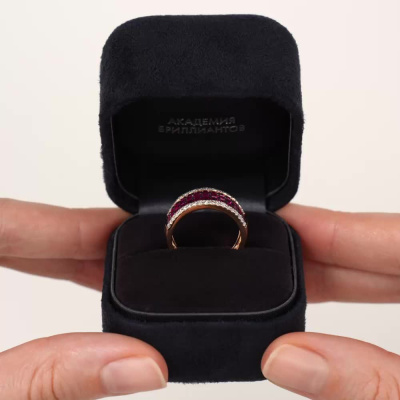 Золотое кольцо с бриллиантами природными и рубинами природными