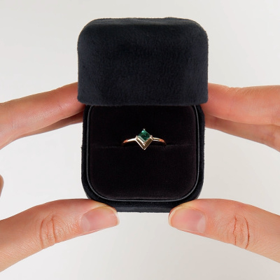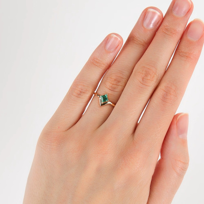 Кольцо с 1 изумрудом природным, 0.35 карат, цвет 4, чистота 3; Желтое золото 585 пробы.