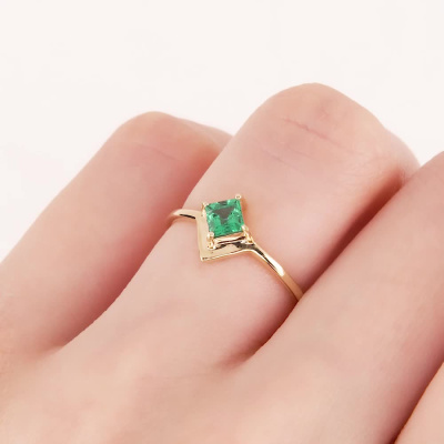 Кольцо с 1 изумрудом природным, 0.35 карат, цвет 4, чистота 3, тип огранки Б; Желтое золото 585 пробы.