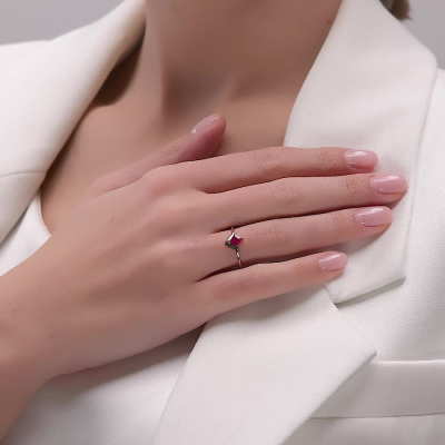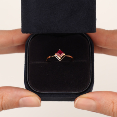 Кольцо с 1 рубином природным, 0.38 карат, цвет 3, чистота 4; Розовое золото 585 пробы.