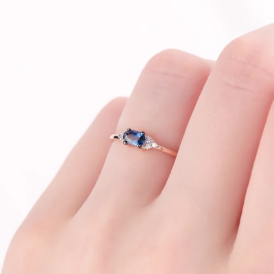 Кольцо с 6 бриллиантами природными, 0.04 карат, огранка круг 17 граней, цвет 2, чистота 3, тип огранки Б; 1 сапфиром природным, 0.32 карат, цвет 3, чистота 4, тип огранки Б; Розовое золото 585 пробы.