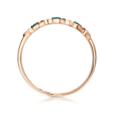 Кольцо с 8 бриллиантами природными, 0.02 карат, огранка круг 17 граней, цвет 2, чистота 3; 3 изумрудами природными, 0.06 карат, цвет 4, чистота 3; золото 585 пробы.