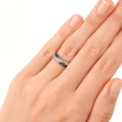 Кольцо с 24 бриллиантами природными, 0.06 карат, огранка круг 17 граней, цвет 2, чистота 3; 11 сапфирами природными, 0.12 карат, цвет 3, чистота 4; Белое золото 585 пробы.