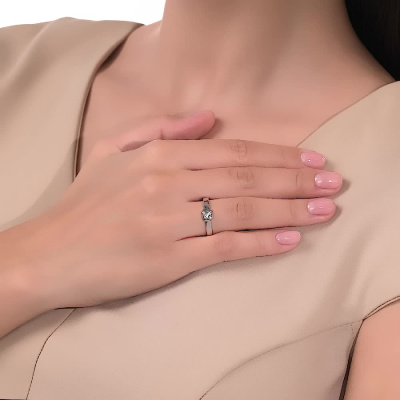 Кольцо с 1 бриллиантом природным, 0.005 карат, огранка круг 17 граней, цвет 2, чистота 3, тип огранки Б; Серебро 925 пробы.