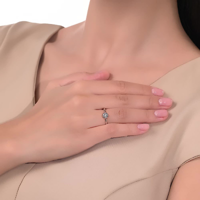 Кольцо с 1 бриллиантом природным, 0.004 карат, огранка круг 17 граней, цвет 2, чистота 3, тип огранки Б; Серебро 925 пробы.