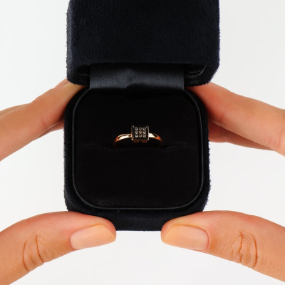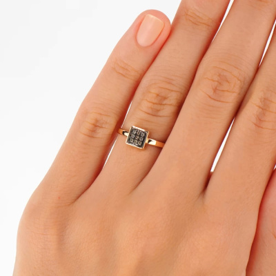 Кольцо с 9 бриллиантами коньячными природными, 0.04 карат, огранка круг 57 граней, цвет 7, чистота 5, тип огранки А; Розовое золото 585 пробы.