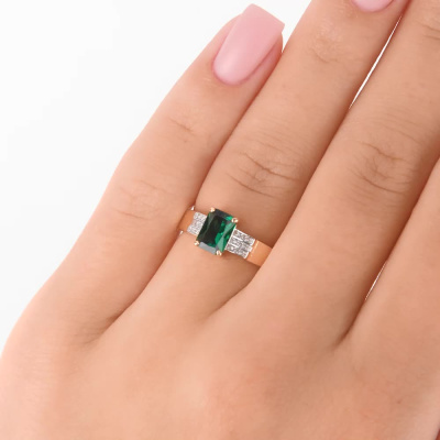 Золотое кольцо с бриллиантами природными и изумрудом выращенным