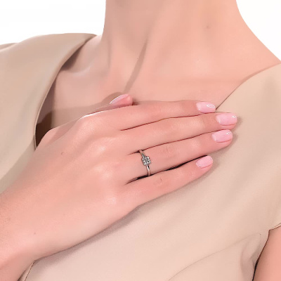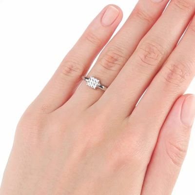 Кольцо с 9 бриллиантами природными, 0.07 карат, огранка круг 57 граней, цвет 3, чистота 6, тип огранки А; Платина 950 пробы.