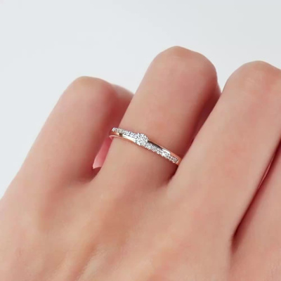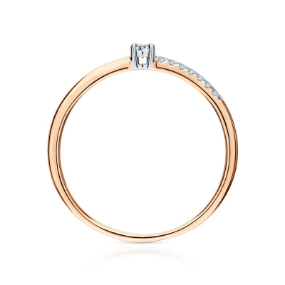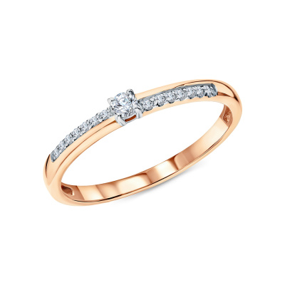 Кольцо с 1 бриллиантом, 0.05 карат, огранка круг 57 граней, цвет 3, чистота 6, тип огранки А; 14 бриллиантами, 0.05 карат, огранка круг 57 граней, цвет 3, чистота 6, тип огранки А; Розовое золото 585 пробы.