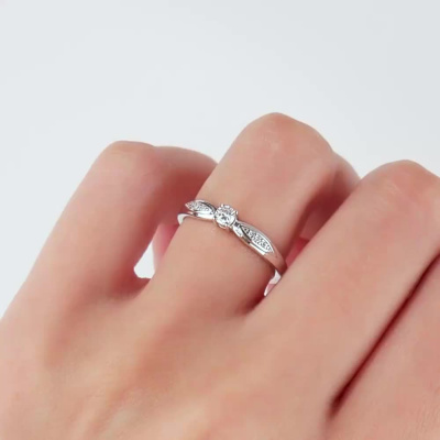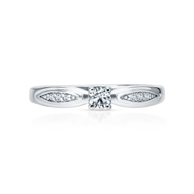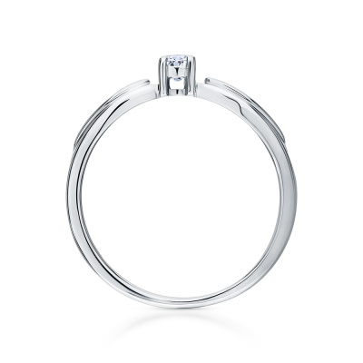 Кольцо с 1 бриллиантом природным, 0.11 карат, огранка круг 57 граней, цвет 3, чистота 6, тип огранки А; 2 бриллиантами природными, 0.01 карат, огранка круг 57 граней, цвет 3, чистота 6, тип огранки А; 4 бриллиантами природными, 0.01 карат, огранка круг 57 граней, цвет 3, чистота 6, тип огранки А; Белое золото 585 пробы.