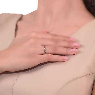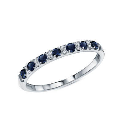 Кольцо с 16 бриллиантами природными, 0.05 карат, огранка круг 17 граней, цвет 2, чистота 2, тип огранки А; 7 сапфирами природными, 0.27 карат, цвет 2, чистота 2, тип огранки В; Белое золото 585 пробы.