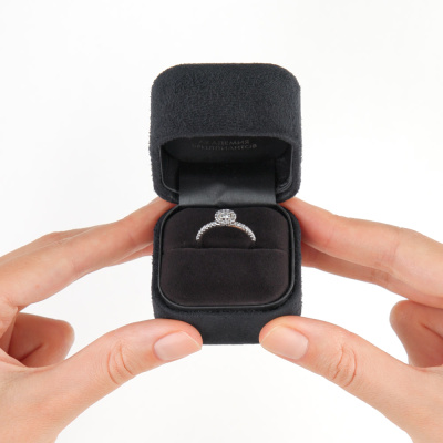 Кольцо с 1 бриллиантом природным, 0.12 карат, огранка круг 57 граней, цвет 3, чистота 6, тип огранки А; 26 бриллиантами природными, 0.25 карат, огранка круг 57 граней, цвет 3, чистота 6, тип огранки А; Белое золото 585 пробы.