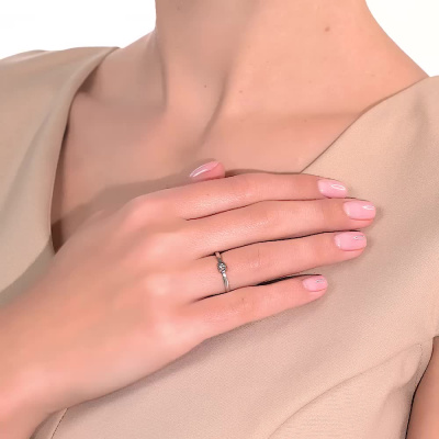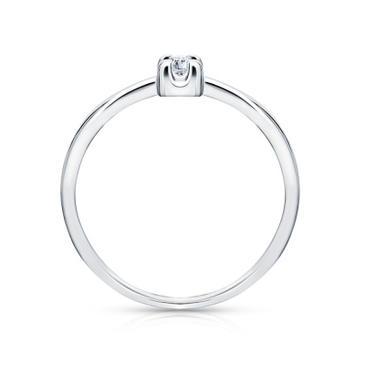 Кольцо с 1 бриллиантом природным, 0.04 карат, огранка круг 57 граней, цвет 3, чистота 6, тип огранки А; Белое золото 585 пробы.