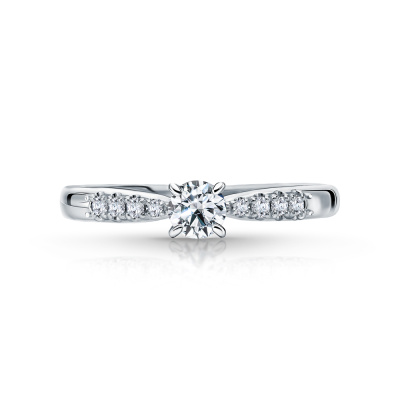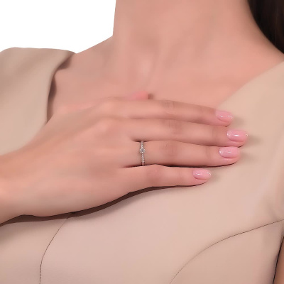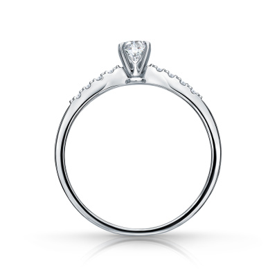 Кольцо с 1 бриллиантом природным, 0.19 карат, огранка круг 57 граней, цвет 3, чистота 6, тип огранки А; 6 бриллиантами природными, 0.06 карат, огранка круг 57 граней, цвет 3, чистота 6, тип огранки А; 2 бриллиантами природными, 0.01 карат, огранка круг 17 граней, цвет 2, чистота 2, тип огранки А; Белое золото 585 пробы.