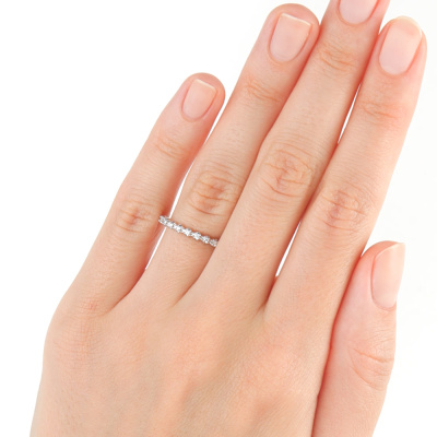 Кольцо с 11 бриллиантами природными, 0.07 карат, огранка круг 57 граней, цвет 3, чистота 6, тип огранки А; Белое золото 585 пробы.