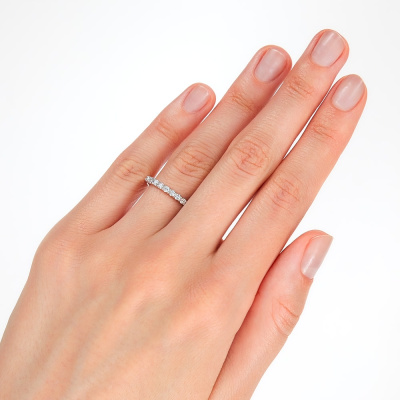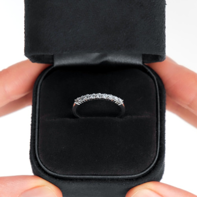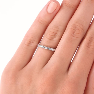 Кольцо с 9 бриллиантами природными, 0.28 карат, огранка круг 57 граней, цвет 3, чистота 6, тип огранки А; Белое золото 585 пробы.