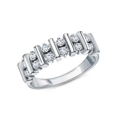 Кольцо с 12 бриллиантами природными, 0.35 карат, огранка круг 57 граней, цвет 3, чистота 6, тип огранки А; Белое золото 585 пробы.