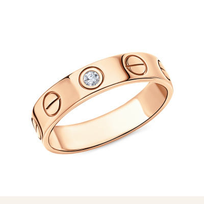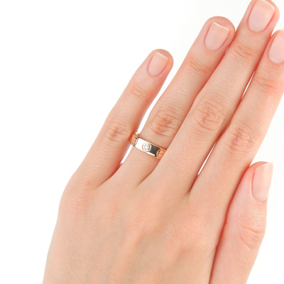 Кольцо с 1 бриллиантом природным, 0.04 карат, огранка круг 57 граней, цвет 3, чистота 6, тип огранки А; Розовое золото 585 пробы.