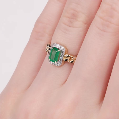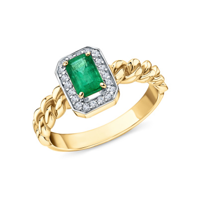 Золотое кольцо с бриллиантами природными и изумрудом природным