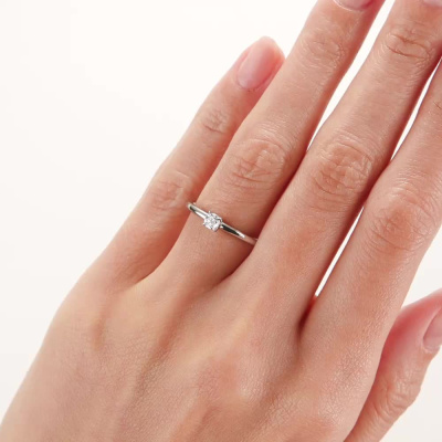 Кольцо с 1 бриллиантом природным, 0.14 карат, огранка круг 57 граней, цвет 3, чистота 6, тип огранки А; Платина 950 пробы.
