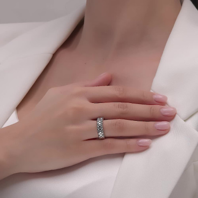 Кольцо с 18 бриллиантами природными, 1.45 карат, огранка круг 57 граней, цвет 3, чистота 6, тип огранки А; Белое золото 585 пробы.