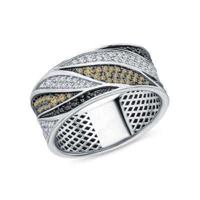 Кольцо с 3 бриллиантами природными, 0.02 карат, огранка круг 57 граней, цвет 3, чистота 6, тип огранки А; 25 бриллиантами природными, 0.1 карат, огранка круг 17 граней, цвет 2, чистота 2, тип огранки А; 29 бриллиантами природными, 0.07 карат, огранка круг 17 граней, цвет 2, чистота 2, тип огранки А; 2 бриллиантами черными природными облагороженными, 0.02 карат, огранка круг 57 граней, цвет 7, чистота 6, тип огранки А; 3 бриллиантами коньячными природными, 0.03 карат, огранка круг 57 граней, цвет 7, чистота 5, тип огранки А; 1 бриллиантом коньячным природным, 0.009 карат, огранка круг 57 граней, цвет 7, чистота 5, тип огранки А; 5 бриллиантами черными природными облагороженными, 0.02 карат, огранка круг 57 граней, цвет 7, чистота 6, тип огранки А; 17 бриллиантами коньячными природными, 0.06 карат, огранка круг 57 граней, цвет 7, чистота 5, тип огранки А; 28 бриллиантами черными природными облагороженными, 0.08 карат, огранка круг 57 граней, цвет 7, чистота 6, тип огранки А; 25