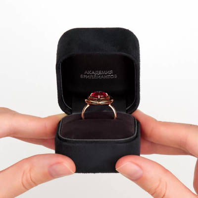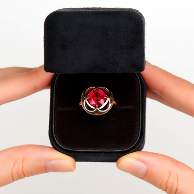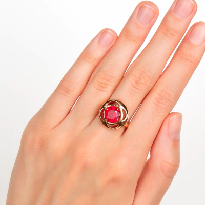 Кольцо с 1 рубином синтетическим, 3.46 карат, тип огранки В; Розовое золото 585 пробы.