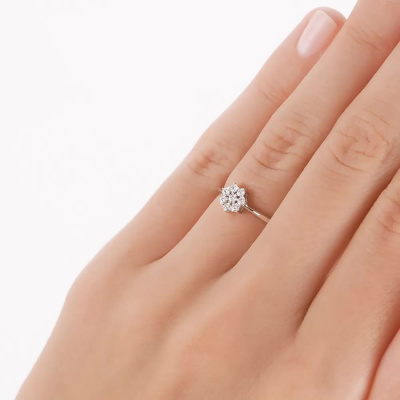 Кольцо с 8 бриллиантами природными, 0.15 карат, огранка круг 57 граней, цвет 3, чистота 4, тип огранки А; Белое золото 585 пробы.