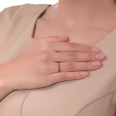 Кольцо с 3 бриллиантами природными, 0.24 карат, огранка багет 25 граней, цвет 3, чистота 3, тип огранки А; 4 бриллиантами природными, 0.1 карат, огранка круг 57 граней, цвет 3, чистота 6, тип огранки А; Розовое золото 585 пробы.