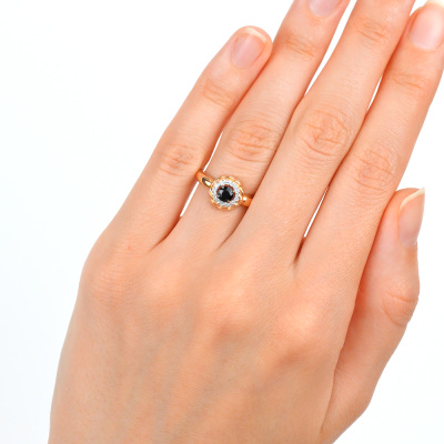 Кольцо с 16 бриллиантами природными, 0.05 карат, огранка круг 17 граней, цвет 2, чистота 2, тип огранки А; 1 сапфиром природным, 0.28 карат, цвет 2, чистота 2, тип огранки В; Розовое золото 585 пробы.