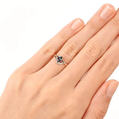 Кольцо с 3 бриллиантами природными, 0.01 карат, огранка круг 17 граней, цвет 2, чистота 2; 1 топазом лондон природным, 0.42 карат; Розовое золото 585 пробы.