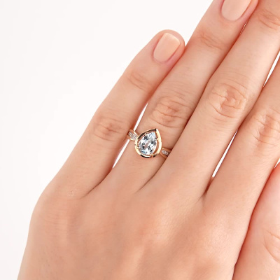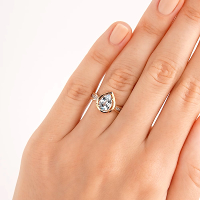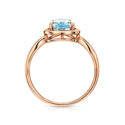 Кольцо с 14 бриллиантами природными, 0.06 карат, огранка круг 17 граней, цвет 2, чистота 2; 1 топазом скай природным, 1.22 карат; Розовое золото 585 пробы.