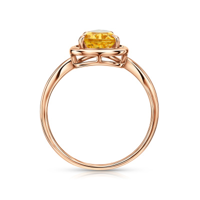 Кольцо с 14 бриллиантами природными, 0.06 карат, огранка круг 17 граней, цвет 2, чистота 2; 1 цитрином природным, 0.86 карат; Розовое золото 585 пробы.