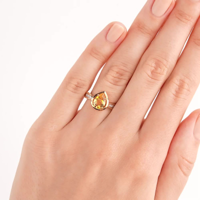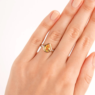 Золотое кольцо с цитрином и бриллиантами