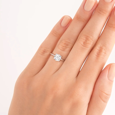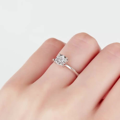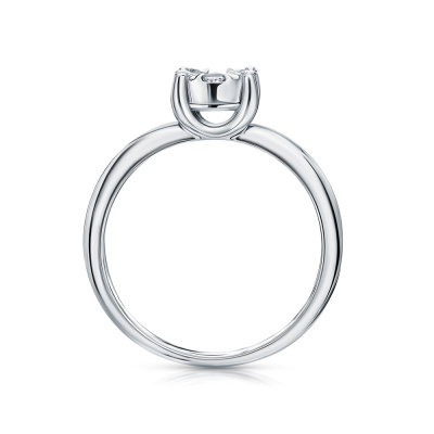 Кольцо с 1 бриллиантом природным, 0.09 карат, огранка круг 57 граней, цвет 3, чистота 6, тип огранки А; 6 бриллиантами природными, 0.13 карат, огранка круг 57 граней, цвет 3, чистота 6, тип огранки А; Белое золото 585 пробы.