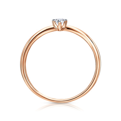 Кольцо с 1 бриллиантом природным, 0.07 карат, огранка круг 57 граней, цвет 3, чистота 6, тип огранки А; Розовое золото 585 пробы.