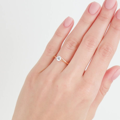 Кольцо с 1 бриллиантом природным, 0.4 карат, огранка круг 57 граней, цвет 3, чистота 6, тип огранки А; Розовое золото 585 пробы.