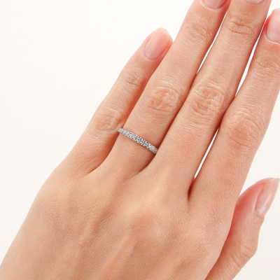 Кольцо с 19 бриллиантами природными, 0.13 карат, огранка круг 57 граней, цвет 3, чистота 6, тип огранки А; Белое золото 585 пробы.