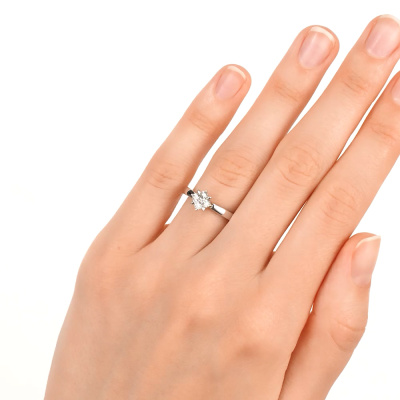 Кольцо с 4 бриллиантами природными, 0.01 карат, огранка круг 57 граней, цвет 3, чистота 6, тип огранки А; Белое золото 585 пробы.