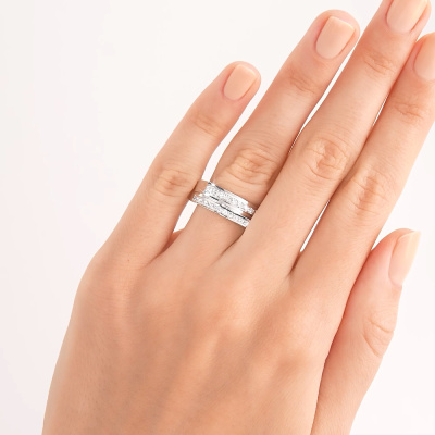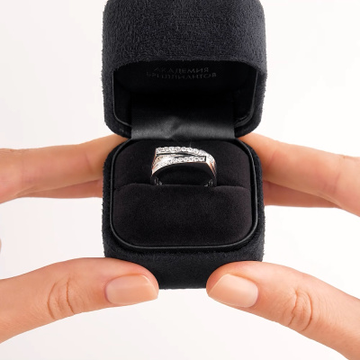 Кольцо с 10 бриллиантами природными, 0.21 карат, огранка круг 57 граней, цвет 3, чистота 6, тип огранки А; 11 бриллиантами природными, 0.14 карат, огранка круг 57 граней, цвет 3, чистота 6, тип огранки А; Белое золото 585 пробы.