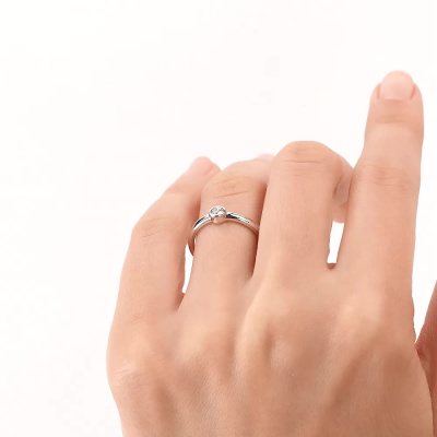 Кольцо с 1 бриллиантом выращенным, 0.11 карат, огранка круг 57 граней, цвет 3, чистота 5; Серебро 925 пробы.